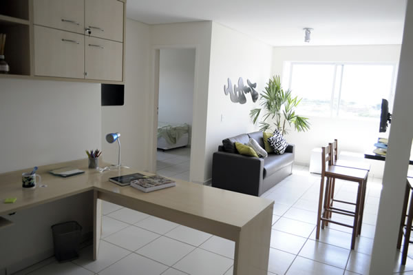 São 3 formatos de apartamento: Halma (54m2), Tangran (56m2) e Ludo (58m2), todos confortavelmente mobiliados comportando até 4 pessoas.