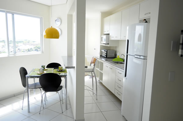 Os apartamentos possuem sala de jantar e estar, área de serviço e cozinha equipada com geladeira e micro-ondas, linha telefônica, TV a cabo, internet e água aquecida, além de todo o enxoval de cama, mesa e banho.