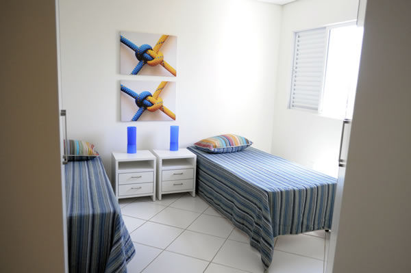 São 3 formatos de apartamento: Halma (54m2), Tangran (56m2) e Ludo (58m2), todos confortavelmente mobiliados comportando até 4 pessoas.